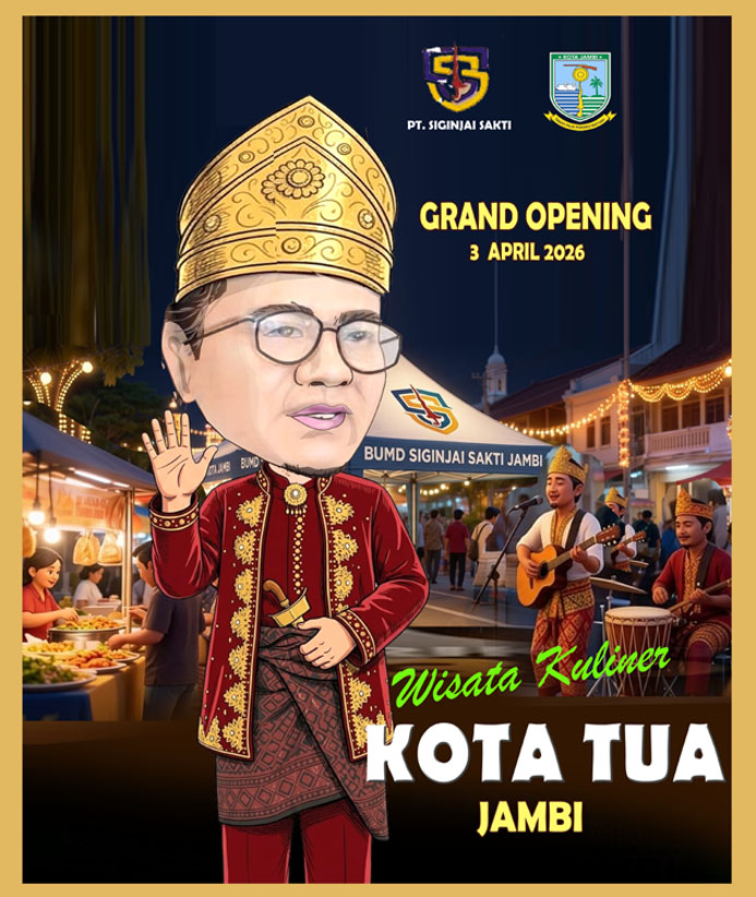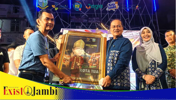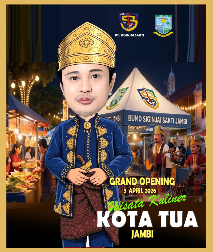 Peresmian destinasi Wisata Kuliner di kawasan Kota Tua Kota Jambi, ditandai secara simbolis dengan penyerahan cindera mata berupa Karikatur oleh Pelaksana Tugas (Plt) Direktur PT Siginjai Sakti (Perseroda), Ardiansyah kepada Walikota dan Wakil Walikota yang berthemakan suasana Wisata Kuliner Kota Tua.