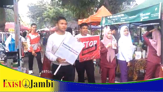 EXIST JAMBI NEWS, JAMBI — Forum Koordinasi Pencegahan Terorisme (FKPT) Provinsi Jambi bersama Densus 88 Anti Teror Satgaswil Jambi menggelar aksi kampanye simpatik di kawasan Car Free Day (CFD) depan Kantor Gubernur Jambi, Minggu pagi (19/10).