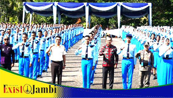 EXIST JAMBI NEWS, Pijoan – Gubernur Jambi, Dr. H. Al Haris, S.Sos., M.H., secara resmi mengukuhkan sebanyak 278 siswa baru Angkatan XXXII SMAN Titian Teras H. Abdurrahman Sayoeti Tahun Pelajaran 2025/2026. Pengukuhan ini dilaksanakan setelah para siswa menjalani masa orientasi dan adaptasi selama tiga bulan penuh sebagai bagian dari sistem pendidikan di sekolah unggulan tersebut. Hal tersebut disampaikan Gubernur Al Haris ketika memberikan arahan pada PENGUKUHAN SISWA ANGKATAN XXXII SMAN TITIAN TERAS HAJI ABDURRAHMAN SAYOETI TAHUN PELAJARAN 2025/2026, bertempat di SMAN Titian Teras ABDURRAHMAN Sayoeti, Pijoan, Kabupaten Muaro Jambi, Sabtu (04/10/2025) pagi.
