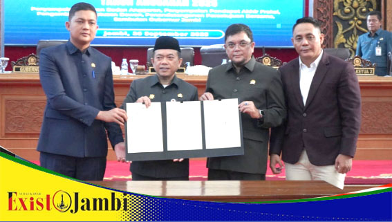 Exist Jambi News, Jambi – Gubernur Jambi Dr. H. Al Haris, S.Sos, MH mengemukakan, Pemerintah Provinsi Jambi tetap optimis membangun dengan anggaran yang terbatas karena mengalami penurunan pendapatan yang sangat luar biasa, dan karena adanya dana pemerintah pusat yang tidak bisa disalurkan seperti Dana Bagi Hasil (DBH), namun pemerintah tetap optimis program bisa berjalan, program Asta Cita juga tetap dijalani. Hal tersebut dikemukakannya saat menghadiri Rapat Paripurna Dewan Perwakilan Rakyat Daerah (DPRD) Provinsi Jambi, Dengan Anggenda Perda Perubahan APBD Provinsi Jambi, Penyampaian Laporan Badan Anggaran, Penyampaian pendapat Akhir Fraksi, Pengambilan Keputusan Dewan dan Penandatanganan Persetujuan, bertempat di Ruang Sidang Utama Dewan Perwakilan Rakyat Daerah (DPRD) Provinsi Jambi, Jum’at (26/09/2025) siang.